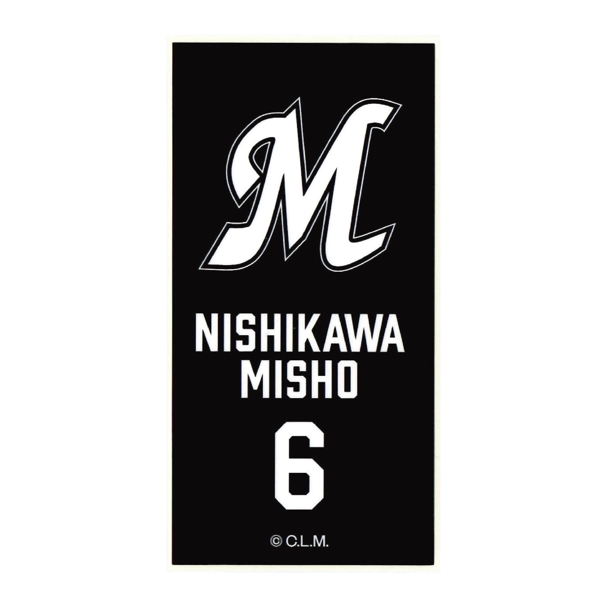 背番号6 西川史礁 千葉ロッテマリーンズ 選手ステッカー(ブラックB)